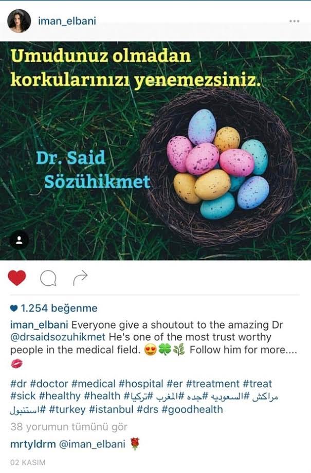 إيمان نشرت صورة عبر حسابها في موقع Instagram تشكر فيها طبيب وتقول إنه محل ثقة، وقام مراد بالتعليق والإعجاب على الصورة.