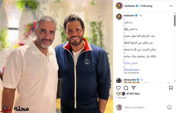 ونشر نيشان صورة عبر حسابه على تطبيق انستغرام أطلَّ فيها مع شاكر، وعلّق عليها قائلاً: "يا غايب…يا حاضر بِقُوَّة. تحت الزّينكو (كما يقول فضل) في مُخَيَّم عين الحلوة التقَيْنا. وكان الحديث عن كلّ ما يخصّه. عائلة، فنّ، مجتمع، حياة، سياسة".