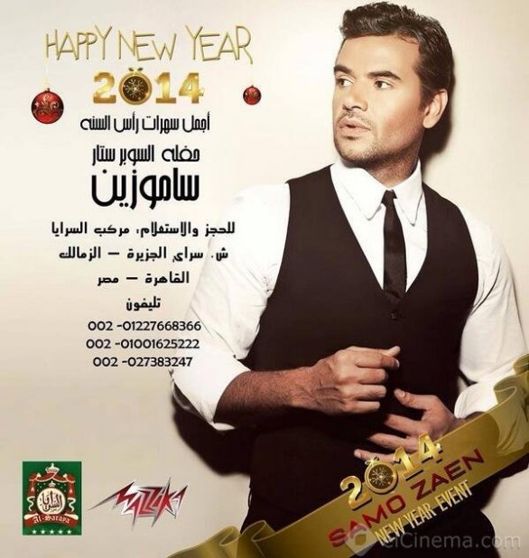 نشر الفنان السوري سامو زين صورة الإعلان الترويجي لحفل رأس السنة الميلادية عام 2014 على صفحته الرسمية بموقع فيسبوك وحسابه الشخصي بموقع التواصل الاجتماعى تويتر، حيث من المنتظر أن يحيى سامو زين حفل رأس السنة بمركب السرايا بالزمالك.