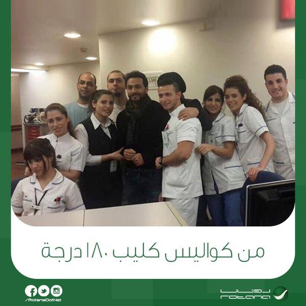 وكتب الحساب الرسمي لشركة "روتانا" عبر موقع "تويتر" في تعليقه على الصورة: "صورة من كواليس كليب 180 درجة للفنان تامر حسني من إنتاج شركة روتانا".
