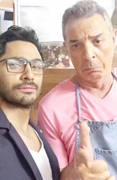 وظهر تامر في الصورة التي نشرها عبر حسابه الشخصي بموقع تبادل الصور والفيديوهات "إنستجرام" برفقة النجم الكبير محمود حميدة في لقطة أثناء كواليس تصوير الفيلم.