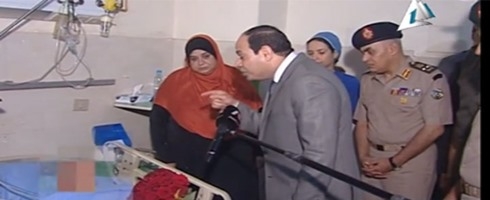 ونقل التلفزيون المصري لقطات من الزيارة التي تمت بمستشفى الحلمية العسكري، شرقي القاهرة، والحديث الذي دار بين الرئيس المصري والفتاة، التي تم إخفاء ملامح وجهها.