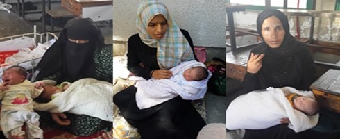 هناء أبو الروس 23 عاما أيضا من زلاطة من الشوكة برفح انجبت بالأمس ليان ولديها طفلة واحدة لم تتم عامين بعد، تقول بألم: موقف لا يمكن تصوره الدبابات الإسرائيلية دخلت منطقتنا والقصف لم يتوقف لم نجد خيارا بترك منازلنا قبل أن يهدوها على رؤوسنا، مشيت مسافة كبيرة وسط خوف ورعب كباقي الجيران، لم أكن أظن أننا سنبقى على قيد الحياة، شعرت بالطلق طول الليل في مركز الإيواء ولم أكن استطيع أن أرفع صوتي فهنالك عائلات كثيرة بالمكان، وصباحا حدث قصف قريب ربما أقل من 50 متر فقط بصاروخين وكان الصوت ملاصقا تماما وقريب وتملكني الرعب واخذت بالبكاء و لم أستطع التحمل وجاء زوجي وأحضر بالتنسيق مع مركز الإيواء الإسعاف والحمد لله وصلت المشفى وولدت هناك، لكن وضعي الصحي كان مزري وولادتي لم يكن لدي أي قوة وحتى الآن لم استرد عافيتي لكني مرغمة على الجلوس اغلب الوقت وحتى النوم ليس مريحا ولا يراعي حاجتنا كنساء بالكاد ولدن، لكن الأمر ليس بيدنا هذا ما قدر لنا."