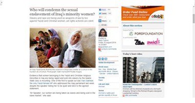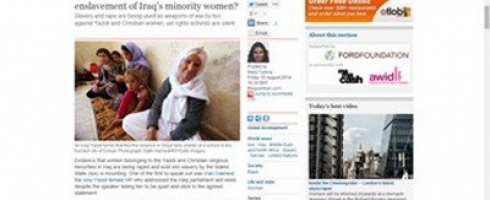 والتفتت الجارديان البريطانية للأزمة الحالية التى تطارد نساء الطائفة المسيحية والإيزيدية فى المناطق التى تقع تحت سيطرة داعش، حيث نشرت تقرير يتابع صدى الأزمة ويتحقق من ملابساتها وكيفية مواجهتها من قبل الدول والمنظمات النسائية.