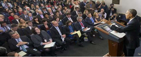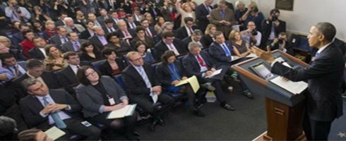 عد انتهائه من خطابه فى آخر مؤتمر عقده البيت الأبيض لعام 2014، قرر الرئيس الأمريكى، باراك أوباما، فتح باب الأسئلة للصحفيين بالمؤتمر، ولكنه قرر القيام بأمر مختلف، وصفه البعض بأنه «تاريخى»، وهو عدم الرد على الصحفيين الجالسين بالصف الأول، والتوجه بالإجابة على أسئلة الصحفيات النساء فقط.
