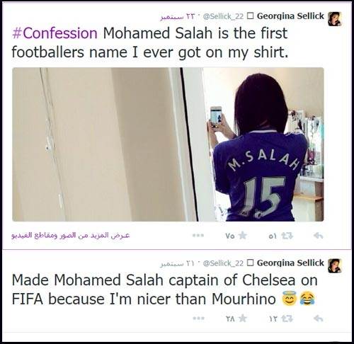 منذ أبريل 2014، ظهر على مواقع التواصل الاجتماعى المختلفة، مشجعة لتشيلسي ترتدي قميص الدولي المصرى محمد صلاح.