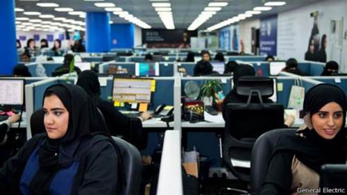 على سبيل المثال، يوظف أحد مراكز تنظيم العمل في حي العقارية بالرياض 500 امرأة سعودية يقدمن خدمات مالية وخدمات خاصة بشؤون الموظفين لعدد كبير من العملاء، بما في ذلك شركة جنرال إليكتريك العالمية العملاقة، وشركة الغاز والنفط السعودية أرامكو، وشركة الاتصالات السعودية.