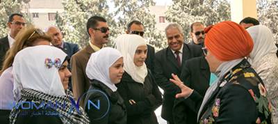 وكان في استقبال سموها لدى وصولها مبنى المدرسة، سعادة السفير طارق معاطي، نائب مساعد وزير الخارجية لشؤون اللاجئين والهجرة، والدكتورة بثينة كشك، مديرة مديرية التربية والتعليم بمحافظة الجيزة، وإليزابيث تان، مسؤولة المفوضية السامية لشؤون اللاجئين بالأمم المتحدة في القاهرة، والدكتور يوسف سليمان وكيل أول وزارة التربية والتعليم بالديوان العام بالقاهرة، ومحمد شوقي مسؤول التعليم في المفوضية السامية لشؤون اللاجئين في الأمم المتحدة بالقاهرة وعدد من المسؤولين في المفوضية ووزارة التربية والتعليم والطاقم التدريسي بالمدرسة.