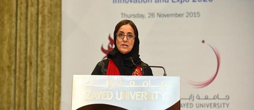 جاء ذلك في كلمة افتتحت بها معاليها الملتقى الثالث للقيادات النسائية الإماراتية الشابة حول "نهج زايد" الذي نظمه قطاع شؤون الطلبة بجامعة زايد تحت عنوان "الابتكار وإكسبو 2020" وذلك في مركز المؤتمرات بفرع دبي في إطار احتفالات الجامعة باليوم الوطني الرابع والأربعين لدولة الإمارات.