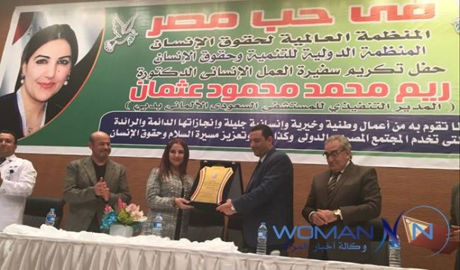 قامت المنظمة العالمية لحقوق الإنسان، والمنظمة الدولية للتنمية وحقوق الإنسان، بتنصيب الدكتورة ريم عثمان، سفيرة العمل الإنساني، والرئيس التنفيذي لمستشفى السعودي الألماني بدبي، كسفيرة للسلام.