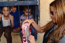 ووزعت المطربة اللبنانية عدد من الهدايا على الأطفال المتواجدين بالحي للاحتفال معهم بالعيد.