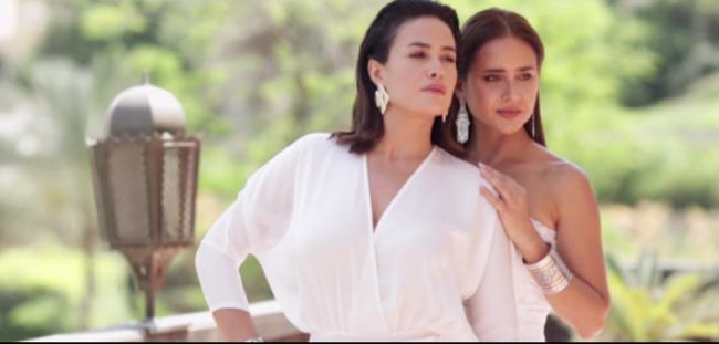 وظهرت النجمتان في الجسلة بثياب بيضاء ومكياج خفيف.