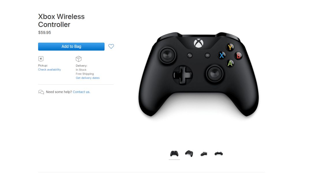 وللاستفادة من ذلك، بدأت شركة آبل في إدراج وحدة التحكم اللاسلكية Xbox Wireless Controller في متجرها الإلكتروني. وتوفر وحدة التحكم المدعمة بتقنية البلوتوث ذراعي تحكم، ولوحة للاتجاه، وأربعة أزرار رئيسية، وزنود الكتف، وغيرها من المدخلات، بالإضافة إلى مقبس سماعة أذن إستريو لمنفذ 3.5 ميليمترات لتوفير الصوت لسماعات الأذن المتوافقة.