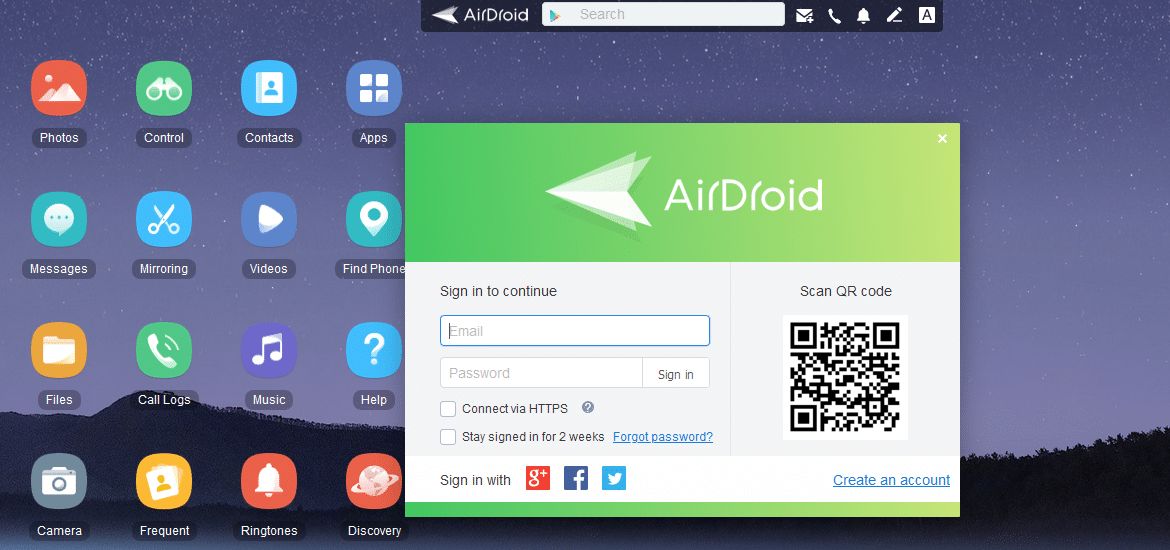 كما يمكنك تشغيل AirDroid داخل متصفح الويب حيث يتوافر منها إصدار للويب، بالإضافة إلى وجود إصدارات مستقلة لأجهزة الكمبيوتر . ولاستخدام أي من الإصدارين ستحتاج أيضًا إلى تطبيق تثبيت تطبيق AirDroid على هاتفك الذكي بالإضافة إلى إنشاء حساب AirDroid.