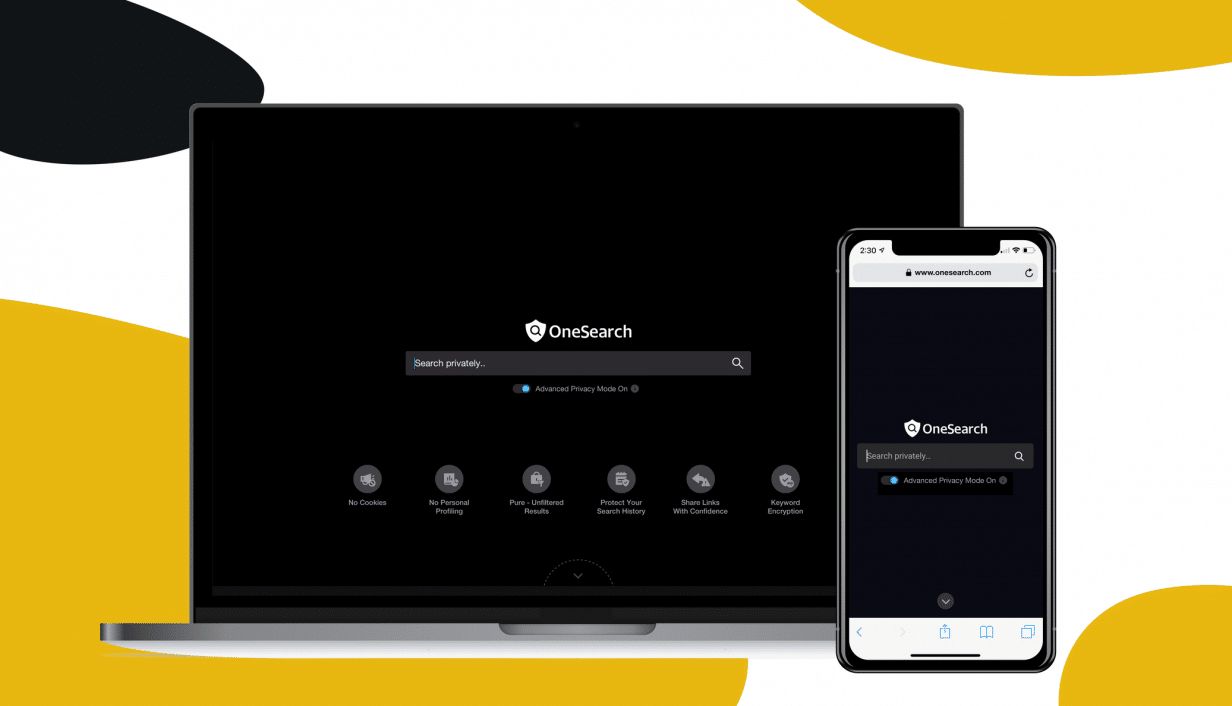 ووفقًا لسياسة خصوصية OneSearch، لن يتم تخصيص نتائج البحث إلا بناءً على بيانات الموقع الجغرافي المجمعة من عناوين بروتوكول الإنترنت IP، ويقول OneSearch: إنه سيفصل بين عناوين بروتوكول الإنترنت للمستخدمين ونتائج البحث الخاصة بهم.