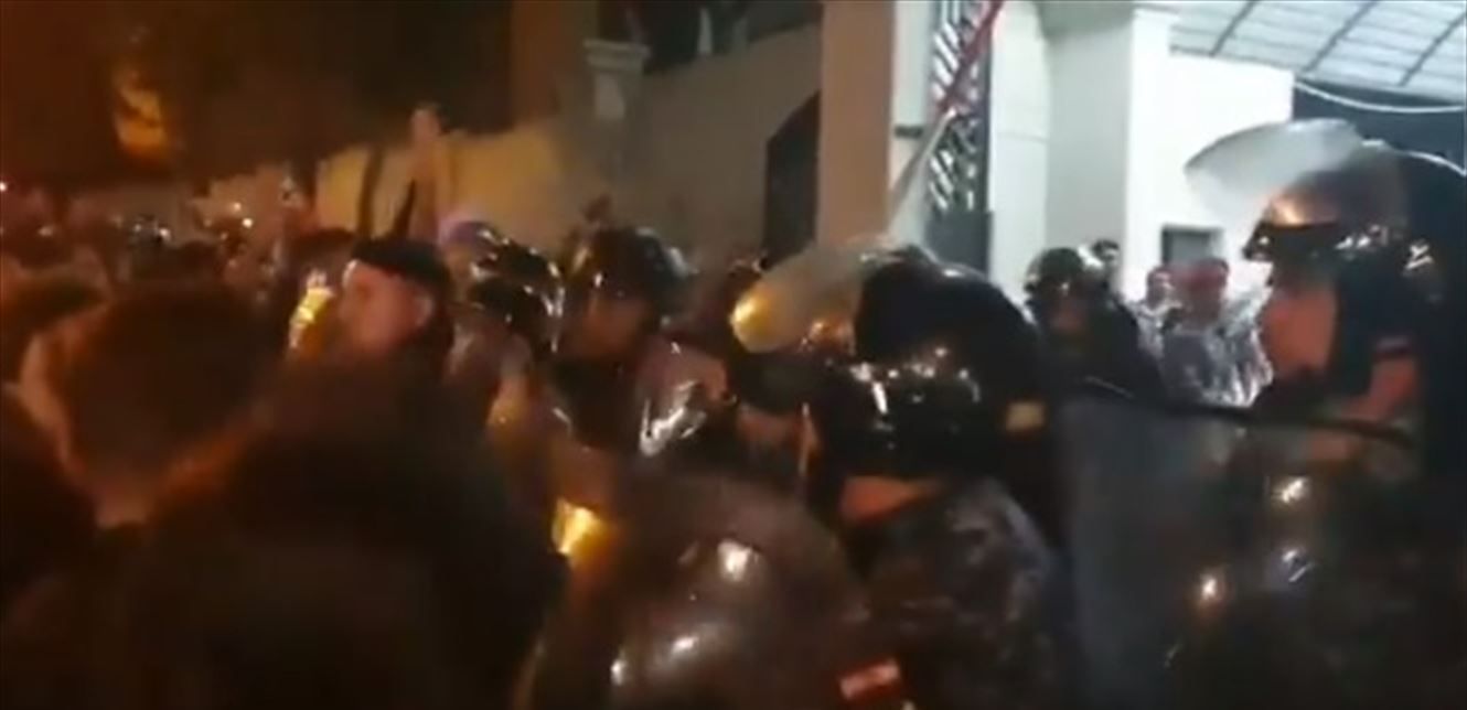 حالة من الهرج والمرج حصلت أمام مدخل ثكنة الحلو، حيث حصل تدافع بين عناصر مكافحة الشغب والمتظاهرين الذين يعتصمون للمطالبة بالافراج عن الشابة دانا حمود التي أوقفت على أثر إشكال مع عنصر في قوى الأمن الداخلي في وقت سابق. شاهدوا الفيديو المرفق.