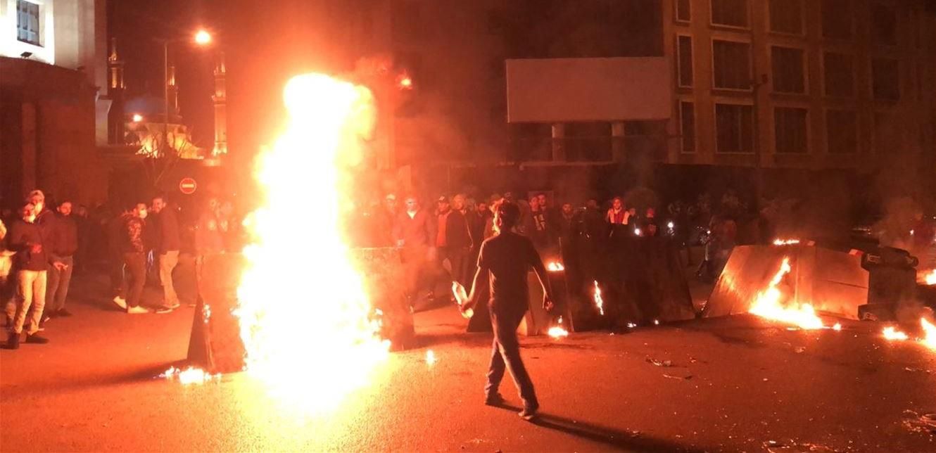 - قطع الطريق أمام جمعية المصارف بالإطارات المشتعلة