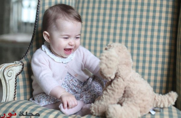 بشعر داكن بعض الشيء، ويبدو أنه وراثة جينية عن والدتها دوقة كامبريدج " كيت ميدلتون "، وبسترة وردية وفستان زهري ممهور قماشه بالأزهار، مع ضحكة وهي تداعب دميتها، ظهرت الأميرة البريطانية " شارلوت " في أول صور تنشر لها بعد أن بلغ عمرها 6 أشهر، والتقطتها لها والدتها بعيداً عن أجواء الصور الرسمية والمصورين المحترفين.