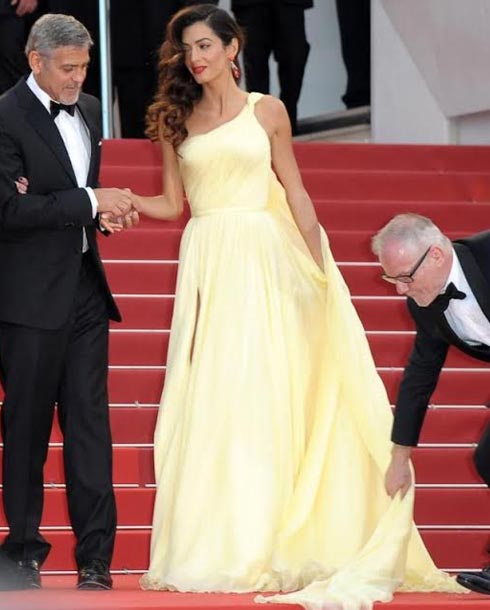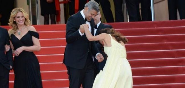 فبعد الممثلة بليك ليفلي والتي كادت أن تسقط على السجادة الحمراء بسبب طول فستانها، ها هي المحامية الحقوقية أمل علم الدين زوجه النجم جورج كلوني تتعرض لنفس الموقف.