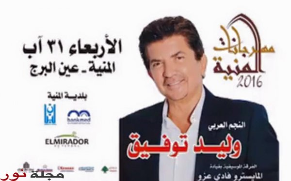 كما سيحيي " توفيق " مساء اليوم حفلاً فنياً ساهراً ضمن فعاليات مهرجان الـمنية، و سيقدّم فيه باقة منوّعة من أجمل أغانيه القديمة و الحديثة.