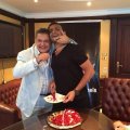 وقد شهد الاحتفال عدد من الصور الطريفة، إذ ظهر جابر في أحد الصور، وهو يمزح مع صبري واضعًا سكينًا على العنق.
