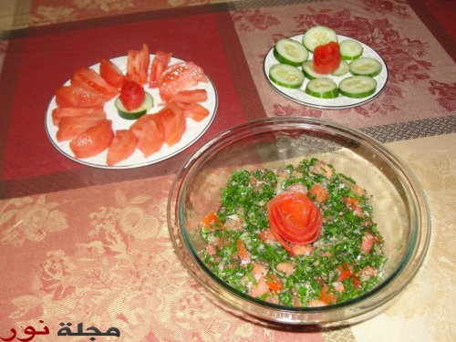 خمسة رؤوس بندورة ( طماطم ) صغيرة مفرومة ناعم
