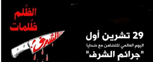 يصادف يوم غد 29/10/2014 اليوم العالمي للتضامن مع ضحايا جرائم "الشرف" ، والذي تحتفل به أيضاً جمعية معهد تضامن النساء الأردني "تضامن" تحت شعار "الظُلم ظُلمات : دماء البريئات" للسنة الثانية على التوالي بعد أن أعلنت قبل عامين عن تبنيها لهذا اليوم.