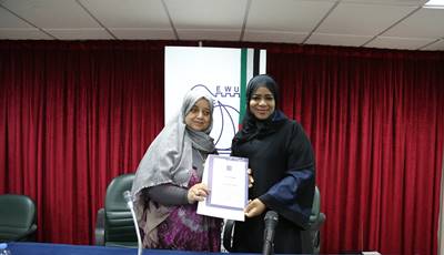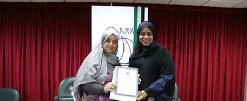 واختتمت الأمسية بتقديم مسؤول النشاط الثقافي باتحاد ادباء وكتاب الامارات الكاتبة والشاعرة الهنوف محمد شهادة تقدير للكاتبة امل المشايخ.