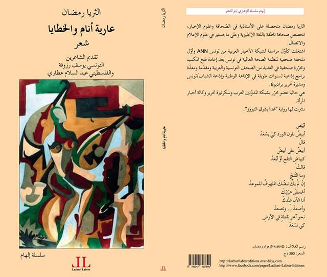 صدر مؤخّرا عن دار نشر لزهاري لبتر بالجزائر، ديوان شعر "عارية أنام والخطايا" للشاعرة التونسية الثريا رمضان. الديوان الذي طُبِع في مئة صفحة، وقدّم له كلّ من الشاعرين التونسي يوسف رزوقة والفلسطيني عبد السلام العطاري، هو المولود الأدبيّ الثاني للشاعرة بعد قصّتها "غدا يشرق النيروز".ستّة وخمسون قصيدة تثير فضول القارئ بداية من العناوين التي اختارتها الشاعرة لقصائدها، "ابتهالات عاشقة"، "عاريا اصعد معي".. الخ، ومن عنوان الديوان نفسه الذي اعتبرته الشاعرة بوّابة لدخول مجموعة القصائد التي يحتويها من خلال المراوحة بين الروحانيّ والواقعيّ، الروحي والجسديّ، في محاولة منها لخلق هالة قدسيّة تغطّي بها الحبّ حتى في أحلك حالاته وأسوأ انهياراته، واختلاف الرؤى حوله.المرأة كانت حاضرة بشخصيّتها القويّة في القصائد، كما تقول صاحبة الديوان، تلك الشخصيّة التي اكتسبتها من الحب نفسه ومن الخيبات التي قد يؤدّي إليها. كما تقول أن الرجل أيضا قادر على تلمّس حضوره بكثافة في القصائد، سواء عاشقا أو معشوقا.الثريا رمضان إعلاميّة قبل أن تكون شاعرة وروائية، عملت لسنوات طويلة في الإذاعة الوطنية التونسية وإذاعة الشباب، وكانت اول مراسلة لشبكة الأخبار العربية في تونس وأوّل ملحقة صحفية لمكتب منظمّة الصحة العالمية بتونس عند إعادة فتحه. متحصّلة على الأستاذية في الصحافة وعلوم الإخبار والماجستير في علوم الإعلام والاتصال من معهد الصحافة وعلوم الأخبار بتونس. وهي تشغل اليوم منصب سكرتيرة تحرير وكالة أخبار المرأة، وعضو في اتحاد المدونين العرب.النصوص الشعرية في هذا الديوان بدأت بالولادة، ولادة العاشق، وانتهت بالموت في صورة شاعرية قتل فيها العاشق الحب، والولادة، ولادة الذاكرة المزدحمة بالحنين. إذ تقول في قصيدة "غُبار الذاكرة" وهي آخر قصيدة ضمّها الديوان:قدْ تغْفو في شارعٍ يخنُقُهُ الرّصَاصْ،تُجاوِرُ بائعةَ الكِبريتْ،تُربِّتُ على أحْلامِها،تُشعِلُ سيجارتَكَوترحَلْ..دونَ أن تكونَ في مَرْمى القنّاصْ.قدْ تلتقِطُ بُندُقِيّةَ شهيدْ،تتفَقّدُ أحْلامَ طفلِهِ على الزّنادْ،تُزيّنُها بشريطةِ ابنتِهِ الحمراءَ وتَرْحلْ..وقد تَمرُّ على بيْتِ حبيبةْ،تراها تُنظِّفُ العَتبةَ مِنْ غُبارِ الذّاكرةْ،تكتُبُ على الجِدارْ:كانَ هُنا شيْءٌ مِنّا.. وقَتَلْتَهْفيُصيبُكَ الطّبشورُ في قلبِكْوترحلْ..