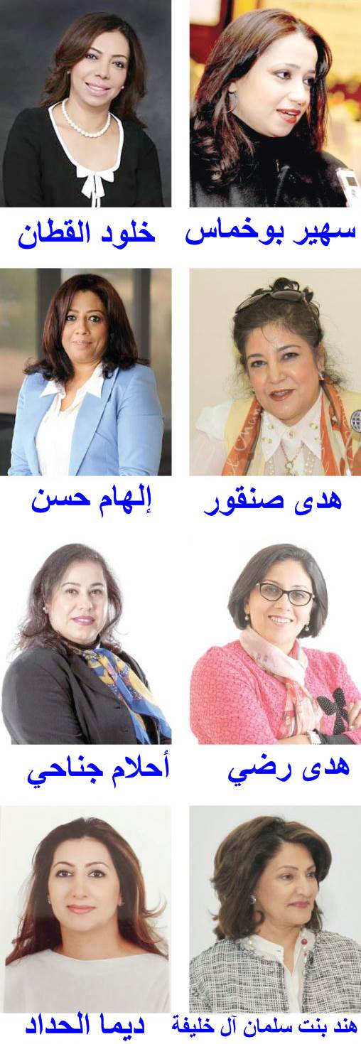 وانضمت سيدة الأعمال ديما الحداد إلى قائمة «معكم» التي يقودها خالد المؤيد، وتضم 16 عضواً. أما سيدتا الأعمال الشيخة هند بنت سلمان وإلهام حسن، فهما منضمتان إلى قائمة «تضامن»، فيما يتوقع أن تضم الكتلة الثالث التي هي في طور التأسيس من قبل 4 جمعيات، ثلاث سيدات، وهن: هدى صنقور، وأحلام جناحي، وسهير بوخماس.