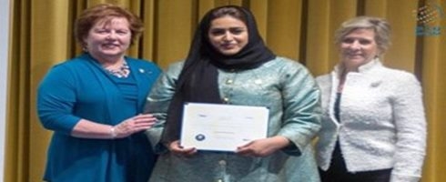 وتسلمت علياء ماجد السويدي دبلوماسية في سفارة دولة الإمارات العربية المتحدة في واشنطن الجائزة نيابة عن أميرة بن كرم.