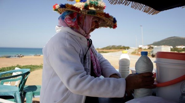 يتلذذ كثيرون بمذاق السايكوك (خبز شعير) باللبن البارد تحت المظلاتّ المنتصبة على الطريق المؤدي إلى أشقار، على ساحل المحيط الأطلسي في طنجة، شمال المغرب. فعلى جانب الطريق، تقف عشرات النساء الآتيات من منطقة جبيلة القريبة، يبعن هناك أكلتهن التراثية - الشعبية. بعضهنّ يأتين بخضار وفواكه لبيعها أيضاً. يقفن هناك منذ أكثر من عشرين عاماً في مهنة نسائية خالصة، فإعداد السايكوك باللبن يحتاج إلى أنامل نسائية، كذلك، فإنّ ظروف المهنة تحتاج إلى قناعة وهدوء وصبر تتميز بها النساء.