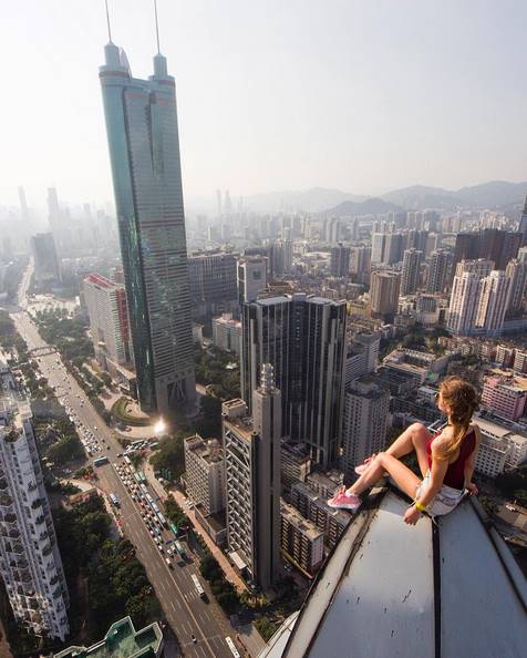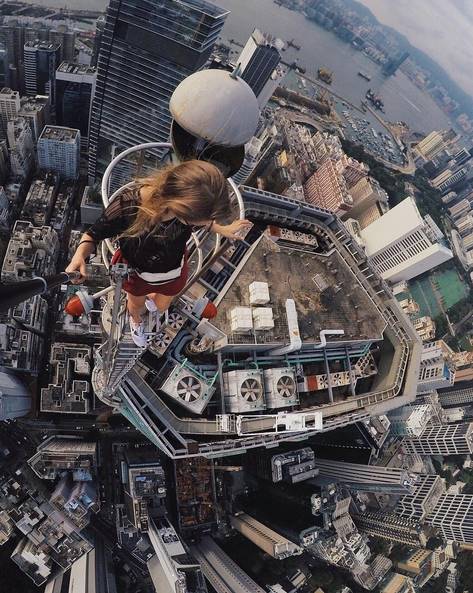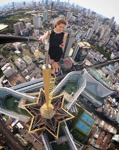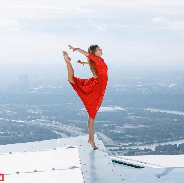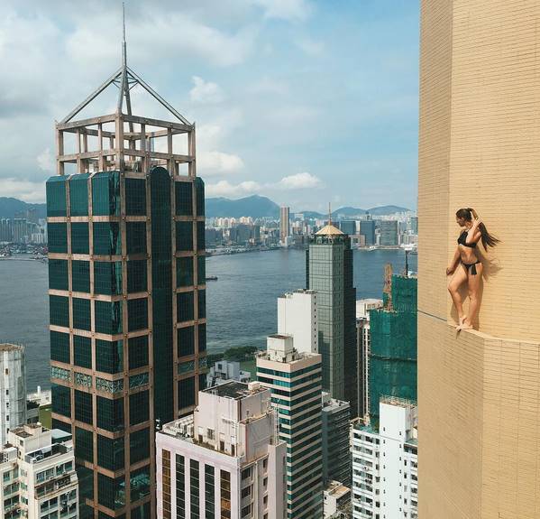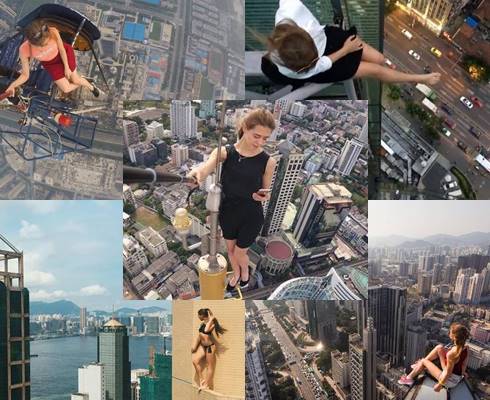 كما أنها تتسلق بنايات مرتفعة لتنفيذ حركاتٍ خاطفة للعين مثل انحناءة اليوجا الخلفية على حافةٍ ضيقة، أو وضع الأرابيسك في الباليه أعلى برج. أحياناً تصور مبتسمةً بعفوية تحت عصا السيلفي وفوق مئات الأمتار التي تفصلها عن الأرض.