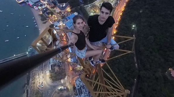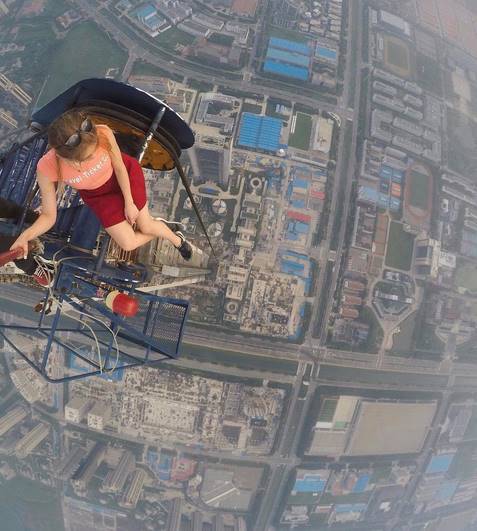 في أحد مقاطع الفيديو الأكثر خطورة خاصتها، تتسلق أنجيلا وحبيبها ما يُقال إنها أطول رافعة في العالم في تيانجين بالصين.