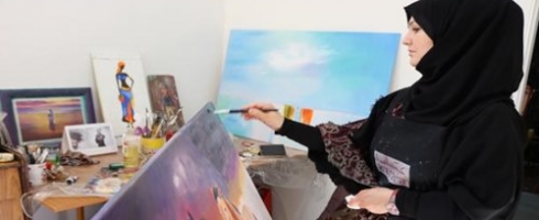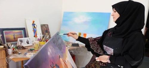 قبل نحو عامين، أرادت العودة إلى الرسم مجدداً، لافتة إلى أن الرسم والتطريز هما الأحب إلى قلبها. في قطر، كانت تقصد سوق "واقف" للفنون، الذي يجمع فنانين عربا وأجانب، حتى إنها صارت تشارك في المعارض التي ينظمها، منها معارض ألوان الصحراء.