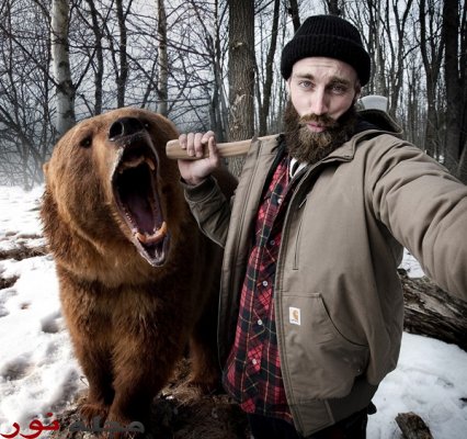 الدب استيقظ من غفوته بعدما أزعجه " ديمتري "، فهاجمه بشدة حتى أرداه قتيلاً.
