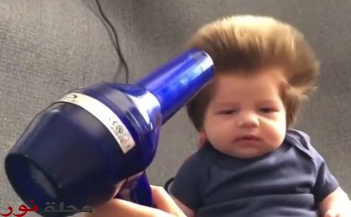 أظهر تسجيل مصور مثير للدهشة نشر على مواقع التواصل الاجتماعي امرأة وهي تصفف شعر طفلها الذي لم يتجاوز عمره الشهرين باستخدام مجفف الشعر بعدما نما شعره بطريقة مدهشة.