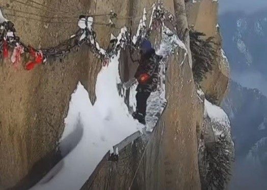 وبحسب القناة، فإن الممر الضيق المراد تنظيفه يقع فوق جبل هواشان في الصين، وتحديداً فوق حافة شديدة الانحدار من هذا الجبل الذي يبلغ ارتفاعه 2154 مترا فوق سطح البحر.