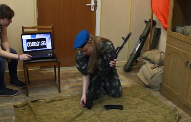 وتفوقت نوسوفا، من مدينة لسنوي في مقاطعة سفيردلوفسك الروسية، على الكثير من الرجال بتسجيلها رقماً قياسيا بفكِّ وتركيب بندقية كلاشينكوف خلال 21.87 ثانية.
