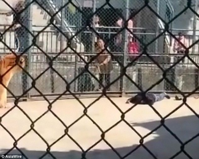 وبحسب الصحيفة، فقد تجمَّع زوار الحديقة حول قفص النمر بينما يفترس حارسه وهو على قيد الحياة، بعدما عضِّه من عنقه.