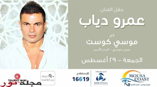 قرر النجم المصري " عمرو دياب " الملقّب بالهضبة، إهداء 10 من متابعيه على مواقع التواصل الاجتماعي تذاكر مجانية لحفله في البحر الأحمر بعيون موسى المقرر إقامته يوم 29 آب ( أغسطس ) الحالي.