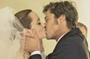 وتظهر "جولي" في الصور وبدا الخجول على وجهها، وهيي مرتدية لفستان زفاف من تصميم خياط دار الأزياء العالمي "فيرساتشي" لويجي ماسي.