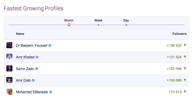 بحسب إحصائيات موقع SocialBakers الشهير، احتل سامو هذا الأسبوع المركز الثاني في قائمة الحسابات الأسرع نموا، متفوقا على عمرو دياب، الذي طرح ألبوم "شفت الأيام" حديثا، وشيرين عبد الوهاب، ومقدم البرامج الساخر باسم يوسف.