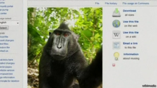 فبعد النزاع القانوني بين موقع "ويكيبيديا " والمصور البريطاني ديفيد سلاتر، أكد الموقع الشهير أن حقوق الملكية الفكرية يملكها القرد نفسه، وليس المصور صاحب الكاميرا.