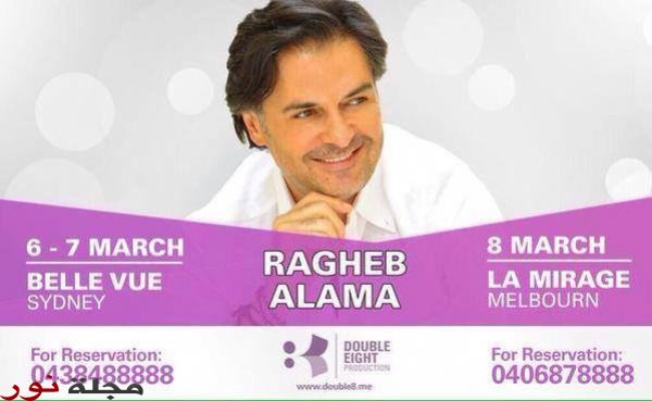 كما يستعد " علامة " للجولة الغنائية الفنية في أستراليا، حيث سيسافر نهاية الشهر الجاري إلى سيدني و سيحيي هناك يومي 6 و 7 آذار ( مارس ) حفلان في Belle Vue و حفلة أخرى في La Mirage بـملبورن يوم 8 آذار ( مارس ).
