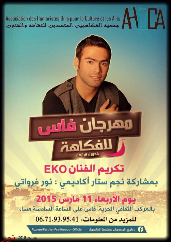 من جهةٍ أخرى، تمّ تكريم الفنان " EKO " بمشاركة النجم السوري " نـور فـرواتـي " مساء اليوم الأربعاء ضمن مهرجان فاس للفكاهة في دورته الرابعة بالمركز الثقافي في مدينة فاس المغربية.