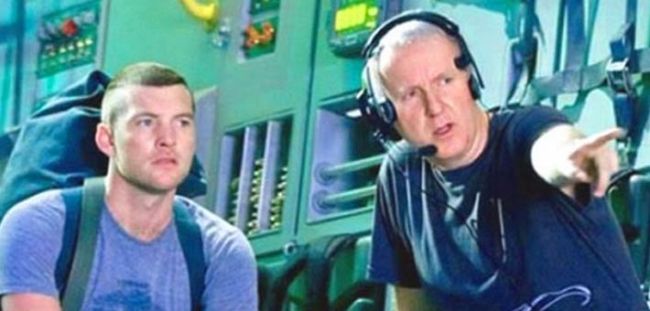 الممثل سام وورثنجتون يستمع إلى نصائح المخرج جيمس كاميرون خلال تصوير Avatar