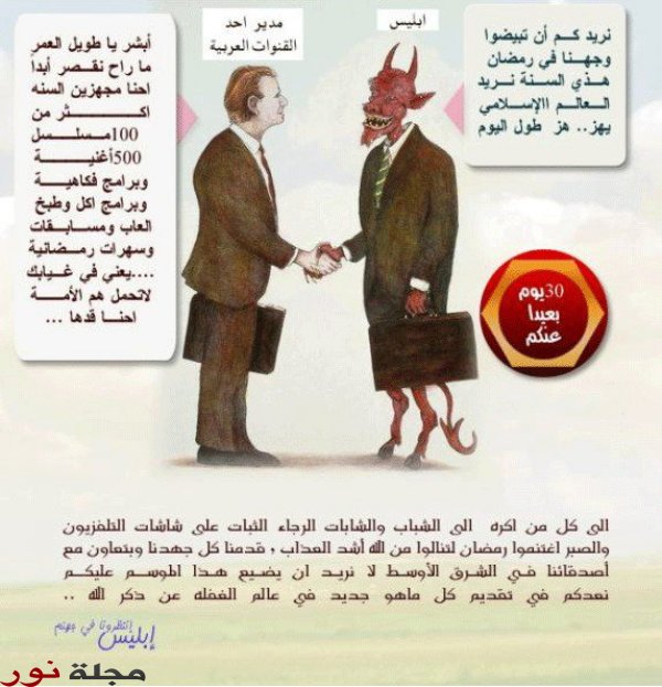 فإذا كان ندائنا لا صدى له.. والموجة أكبر من أن نقف في وجهها.. فأقل ما يمكننا فعله.. وأضعف الإيمان.. أن نغلق هذا الجهاز اللعين طيلة رمضان.. ونفك الارتباط الوثيق بينه وبين الشهر الفضيل.. لتبقى أنواره الروحانية نقية.. ساحرة.. لا تصلها أيدي العابثين الفاسدين.. ودمتم برعاية الله