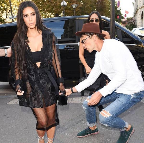 وحاول "متحرش المشاهير" أن يمسك بمؤخرة كيم كاردشيان أثناء توجهها لعرض أزياء L’Avenue في باريس، إلا أن حارسها الخاص باسكال دوفير تمكن من التدخل سريعا وعرقل سيديوك.