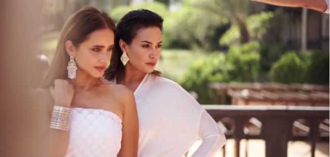 وظهرت النجمتان في الجسلة بثياب بيضاء ومكياج خفيف.